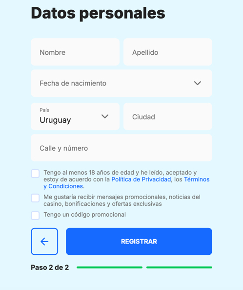 - Selecciona Uruguay como país e ingresa tu ciudad y dirección.